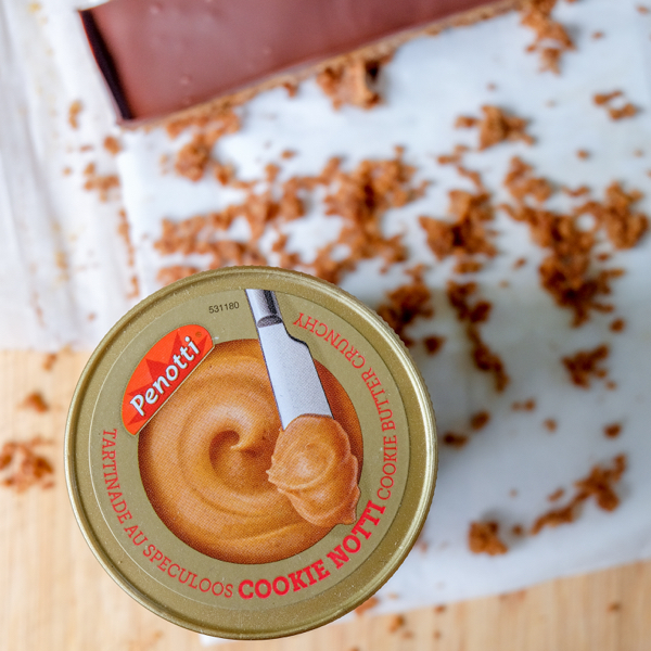 I used using actual speculoos cookies as the base, spread a thin layer of Cookie Notti on top and then covered that with a thin layer of silky smooth chocolate ganache. It’s a cinch to make, sets up beautifully in the fridge and because it needs to stay refrigerated, it’s the perfect sweet treat to keep on hand for the warm weather.