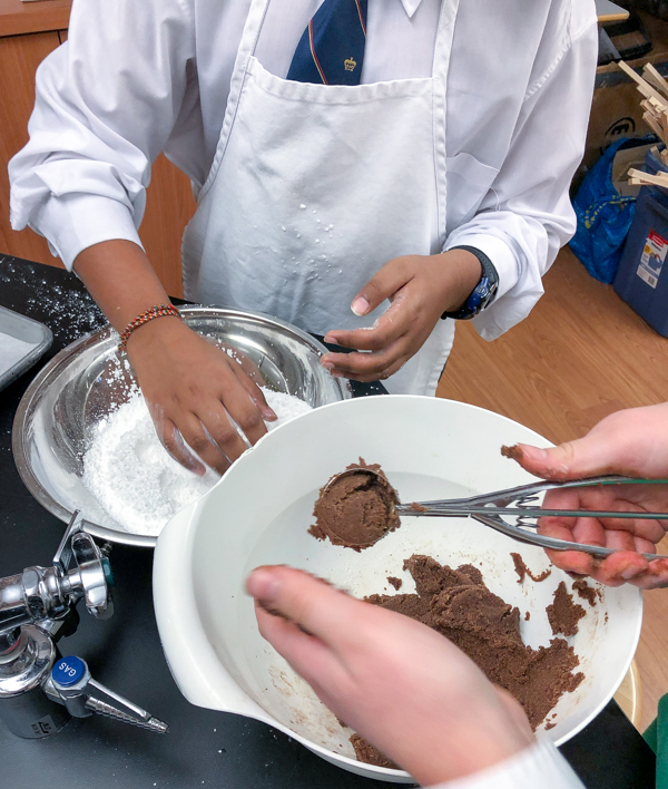 What do you get when you cross 8 boys, four cookie recipes, 40 minutes work time and the third last day of school? If you were thinking “complete chaos”, you would be wrong. This week my Petits Chefs baked four different types of cookies in under 40 minutes (then spent the next 20 minutes while the cookies baked and cooled cleaning up the lab, learning how to stack the dishwasher and talking other groups through the recipe they prepared). When they were baked they took home a selection of each type of cookie (as shown above) although I can’t guarantee how many of them actually made it home with the boys!