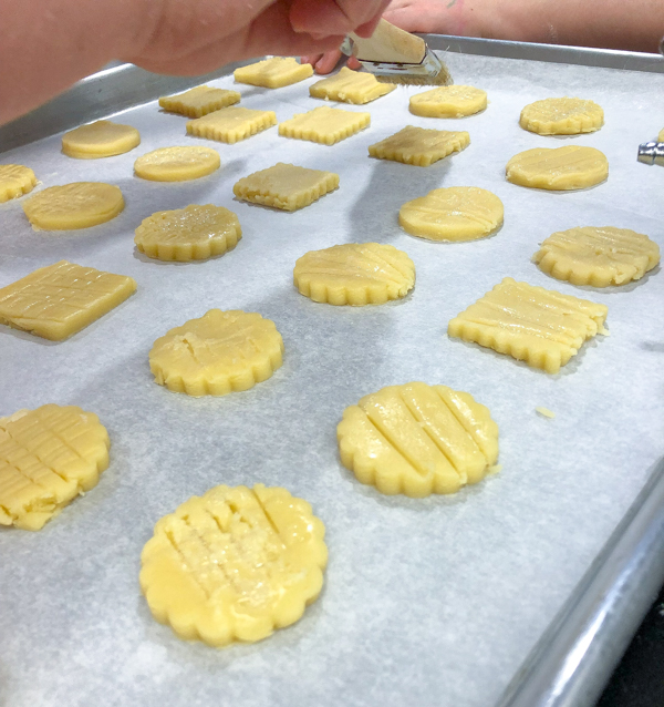 The boys loved scoring the tops of the cookies and brushing them with egg wash…