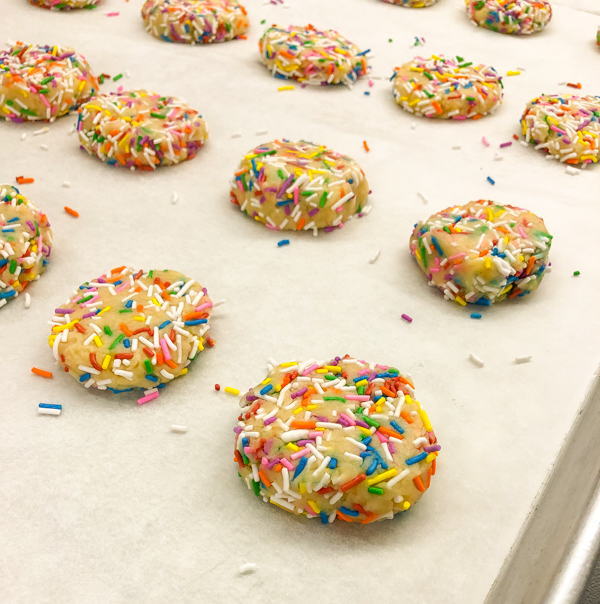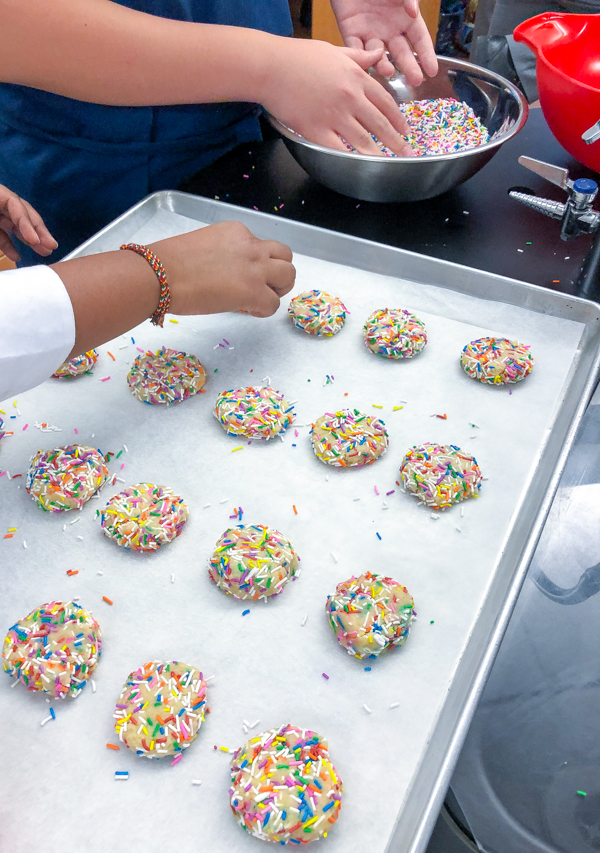 I accidentally told the boys to flatten these cookies (you don’t – I was confusing it with the Confetti Cookies) which is why they were a little bit flat…