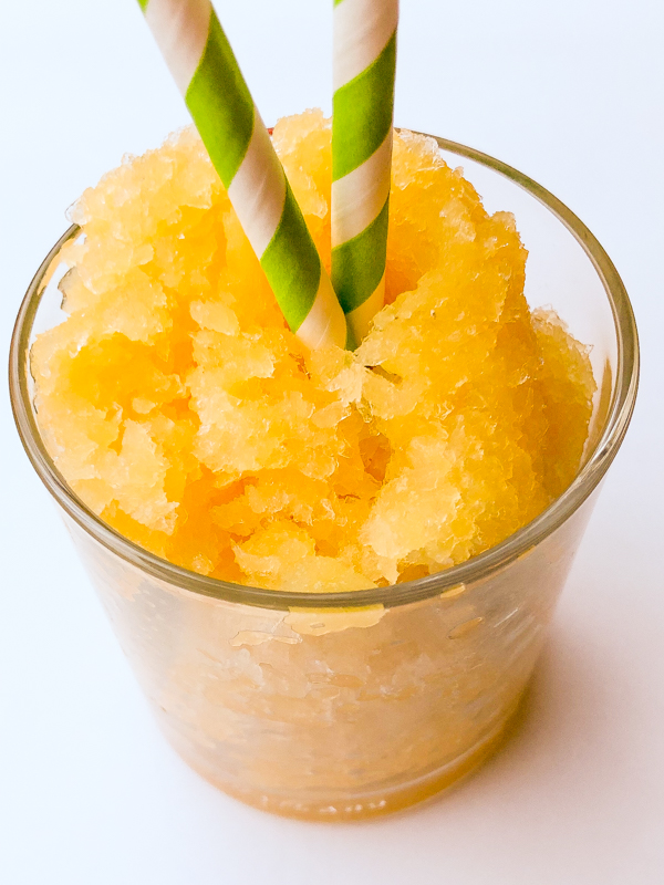 Since this melted pretty quickly, I chose to eat it with a straw rather than a spoon but no matter how you serve it, it was pretty tasty. Would it have been better with champagne? Maybe? I’m not sure how much you could have actually tasted it but clearly I’ll need to try this again sometime when there’s leftover champagne (um, like when would that ever happen?). I liked the consistency of this granita version too – though I love a good sorbet, granita is a mighty fine substitute if you don’t have an ice cream maker.