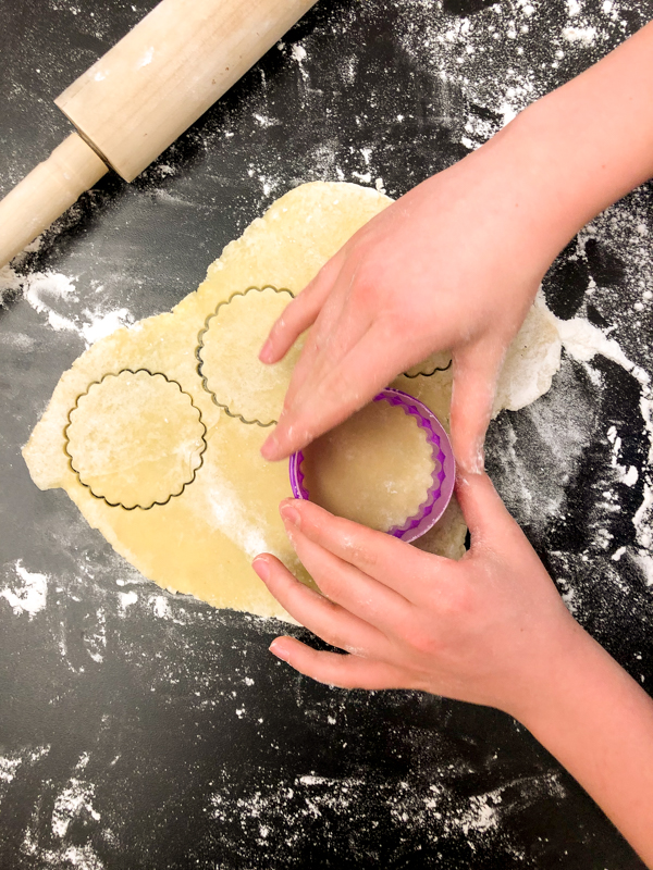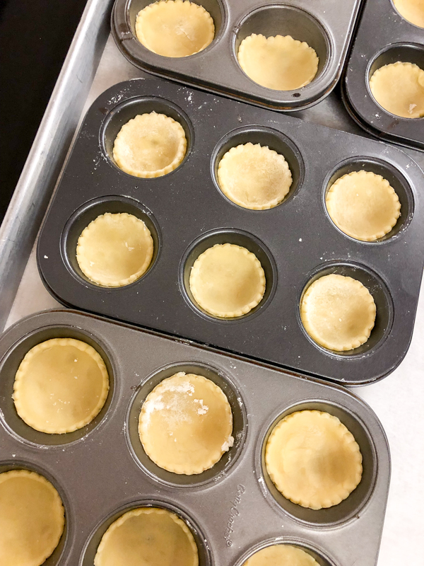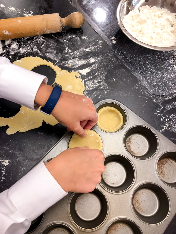 We used cookie cutters to get the pastry shells just the right size for the muffin tins…