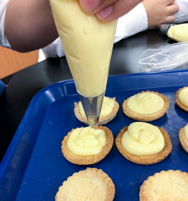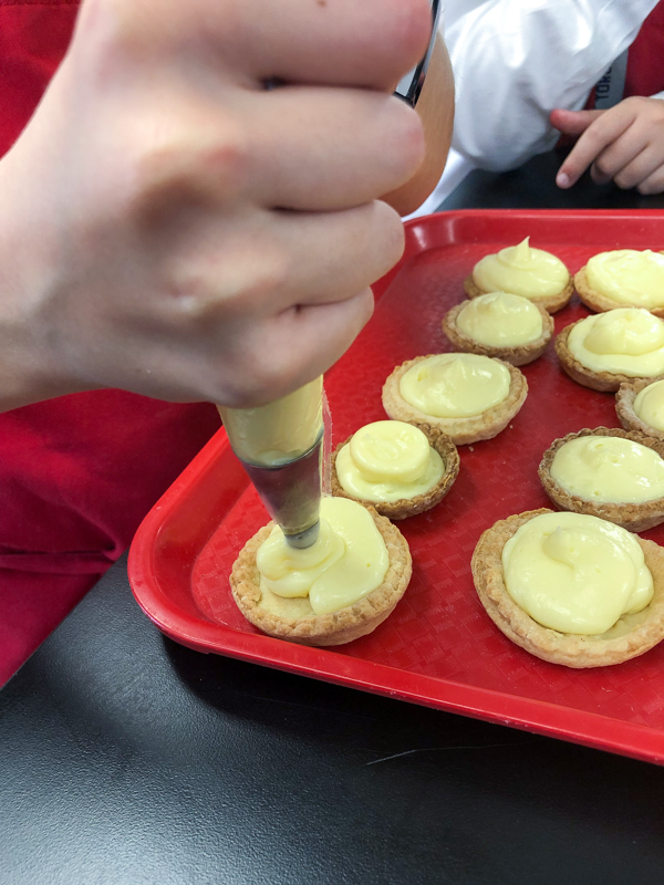 And once the tart shells were baked and cooled, we learned how to use piping bags full of delicious pastry cream…