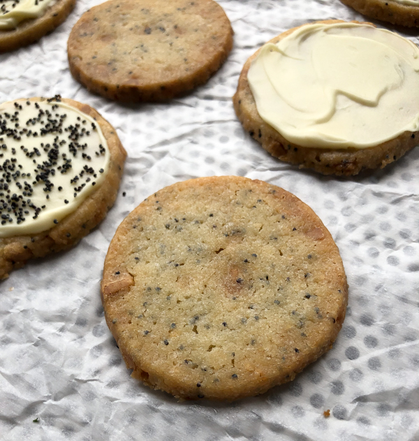 I really liked the surprise flavour of these cookies. They look like they might taste like citrus (when I see poppy seeds I think “lemon” or “orange” automatically) so the sweetness from the white chocolate is a surprise! That said, I don’t think they needed the extra white chocolate on top (note that the amount of white chocolate the recipe called for doesn’t quite cover the amount of cookies the recipe makes – although maybe it really needs to be much thinner than I “frosted”?).