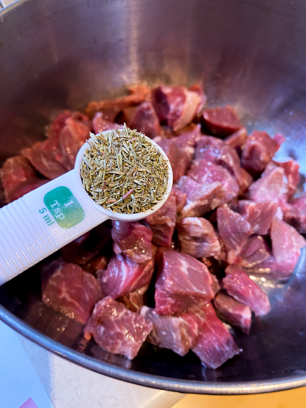 - 450g stewing beef, cut into small cubes (approx. 2cm)