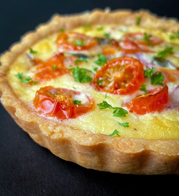 After a few weeks of binge quiche-making and a brunch at Russ & Daughters, the Lower East Side Manhattan restaurant that specializes in smoked fish and Jewish tradition, I came up with this recipe. Think bagels and lox, the Sunday-morning meal of millions of New Yorkers, Jewish or not. But to say “bagels and lox” is to shortchange the dish. What you want with your bagel and smoked salmon (lox is one kind) is “the works”: cream cheese, red onions, capers, dill and tomato. And that’s what you get in this tart.