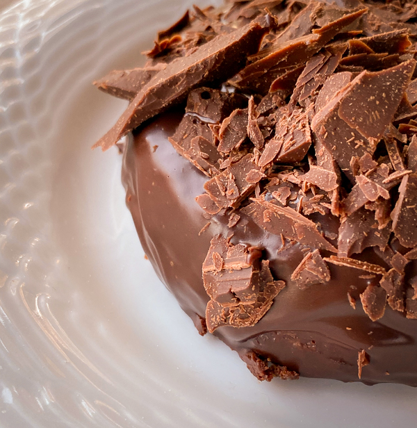 I made 1/2 the quantity of the cake batter (for two 4-inch pans), chocolate shards on top and the chocolate glaze (though I had to add extra chocolate so the glaze was thick enough to coat the cake) and 1/3 of the chocolate pastry cream filling (there were 3 eggs in that recipe and it just seemed neater to divide by 3!). I also didn’t make a sugar syrup to brush the cake with – I used Kahlua since we had a tiny bottle that needed using up on hand. Loved the coffee flavour that imparted! And yeah, maybe I could have gone a little easier on the salted chocolate shards (Dorie’s version doesn’t have nearly as many LOL!) but they were hard to work with and I didn’t feel like getting my tweezers to place a few shards strategically so I just kind of let them fall where they did!