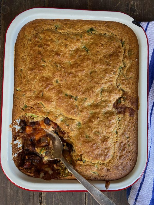 Get the recipe for Dorie Greenspan’s Chicken Chili Tamale Pie on page 125 of Everyday Dorie or here.