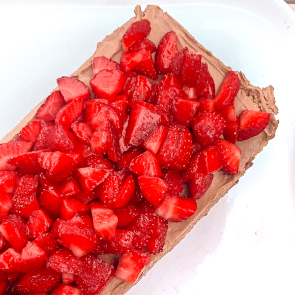 Easy, no-bake icebox cake with creamy chocolate cheesecake and fresh strawberries.
