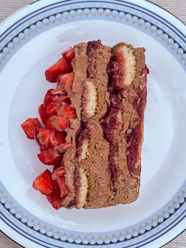 OK, enough about that – onto what to do with a ton of leftover ladyfingers? Oh, and a jar of jam I made as part of a recipe testing job. And some gorgeous strawberries? Hmmm…. How about a CHOCOLATE version of my No-Bake Strawberry Cheesecake Icebox Cake.
