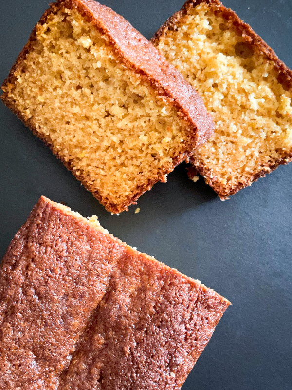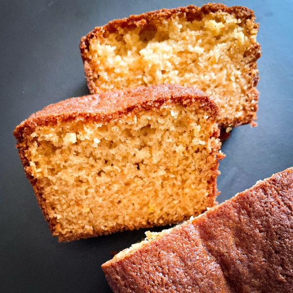 Beautifully deep and orange (from the zest) – I used a combination of lemon and orange. Sturdy enough to be enjoyed on its own but delicately flavoured that it can stand up to a glaze (I didn’t do one this time), or butter and jam or even, curiously suggested, a piece of cheese..