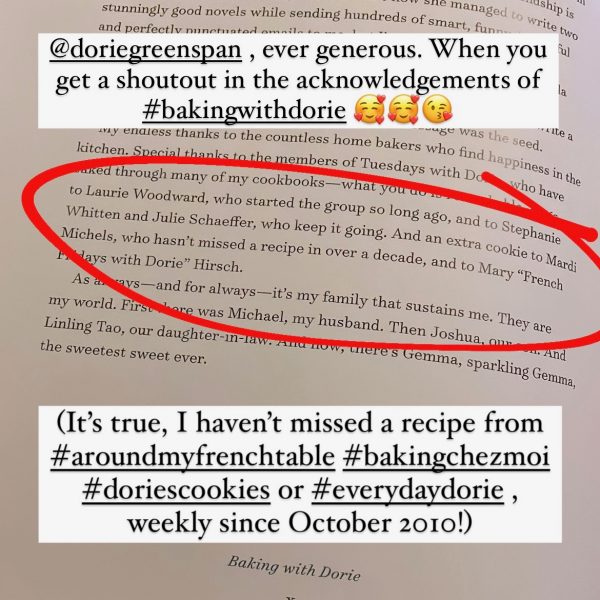 Congrats on the shoutout Mardi!…and loved the picture with Dorie and the students! So happy to be baking alongside of you in a new cooking adventure!! 🙂