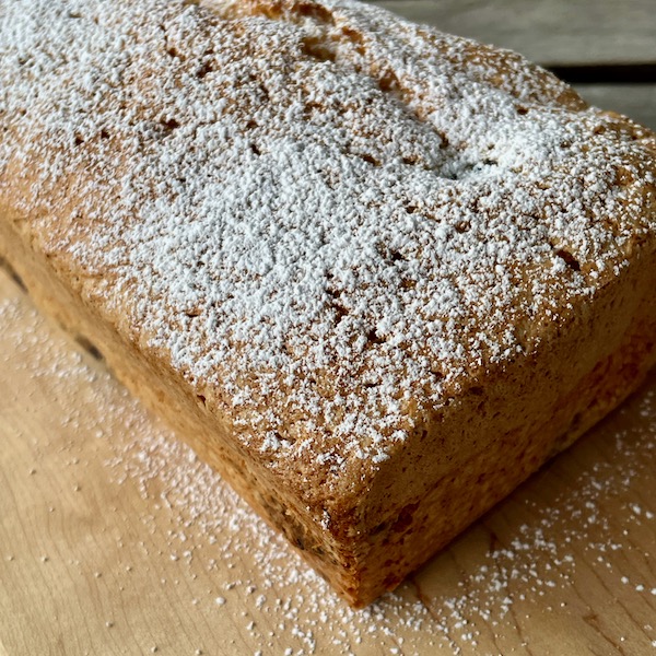 It’s an unassuming-looking loaf, even with a dusting of icing sugar…
