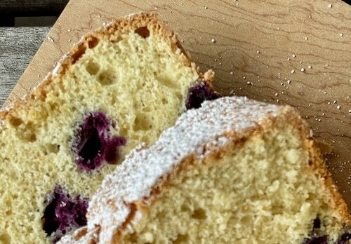 This was absolutely delicious – lighter than a pound cake or a lemon-poppyseed loaf – it had a crunchy exterior which I loved. the blueberries didn’t all sink to the bottom which I liked too! A winner that I’ll remember when I want a little something more special than muffins for breakfast!