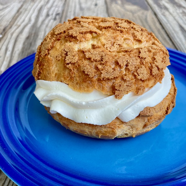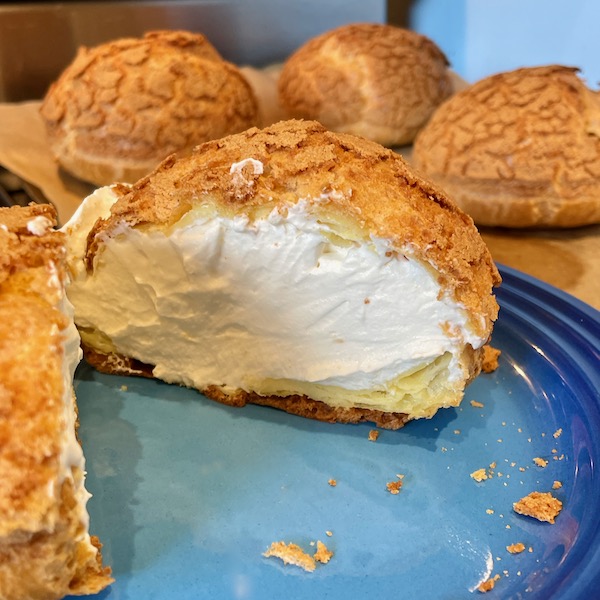 In fact, Neil and I ended up sharing one of these on our first porch meal of the year (yay for nice weather on my birthday!). We gave two away (unfilled so friends could have a choice of filling) and we still have one left, 2 days later that is not deflated and will be re-crisped in the oven and filled with the leftover cream (and maybe some ice cream!).