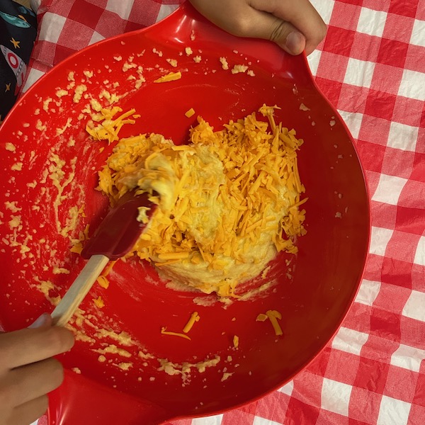 - IF MAKING GOUGERES, ADD THE SHREDDED CHEESE NOW! Mix until well-combined!