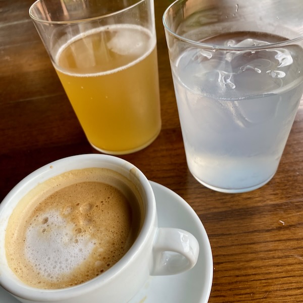 Café con leche, Aquarius electrolytes and Cerveza con Limón (radler)