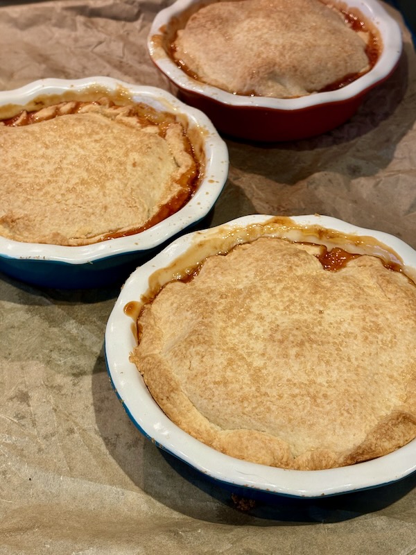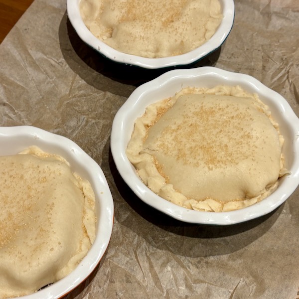 For this iteration I used Dorie’s All-Butter Crust and OF COURSE I minified this – I made half the recipe for three smaller tarts (a generous serve for 1 person or a taster for 2 people). Though the recipe has a few steps, if you break them down and spread it out over the course of a day, nothing is too complicated. I made the pastry and rolled it out, popped it in the fridge then made the caramel. The caramel is poured directly into the dish/es you are using and can sit at room temp for a while.