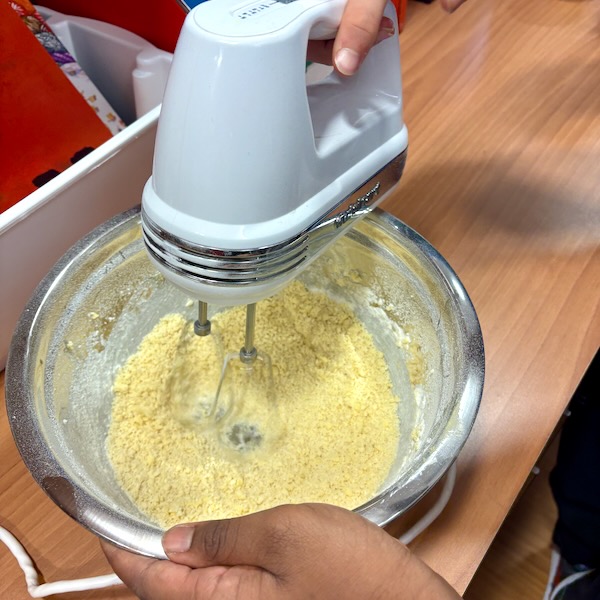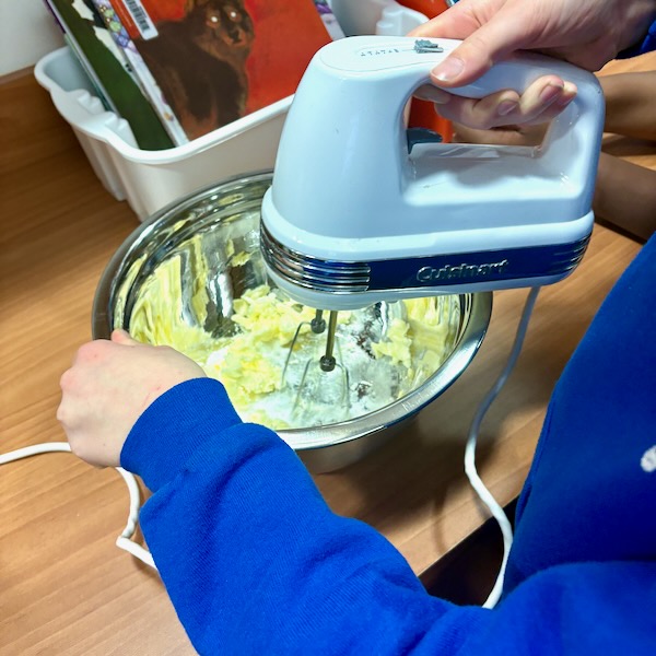 It IS a recipe that requires hand mixers so I had to lug both mine into school as we don’t have any in our equipment anymore. It’s honestly the highlight for the kids, using the mixers, and so we all take turns and use them for a certain amount of “counts” so everyone gets a fair go!