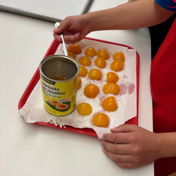 Station 2: Apricots (they needed to be drained and patted dry)