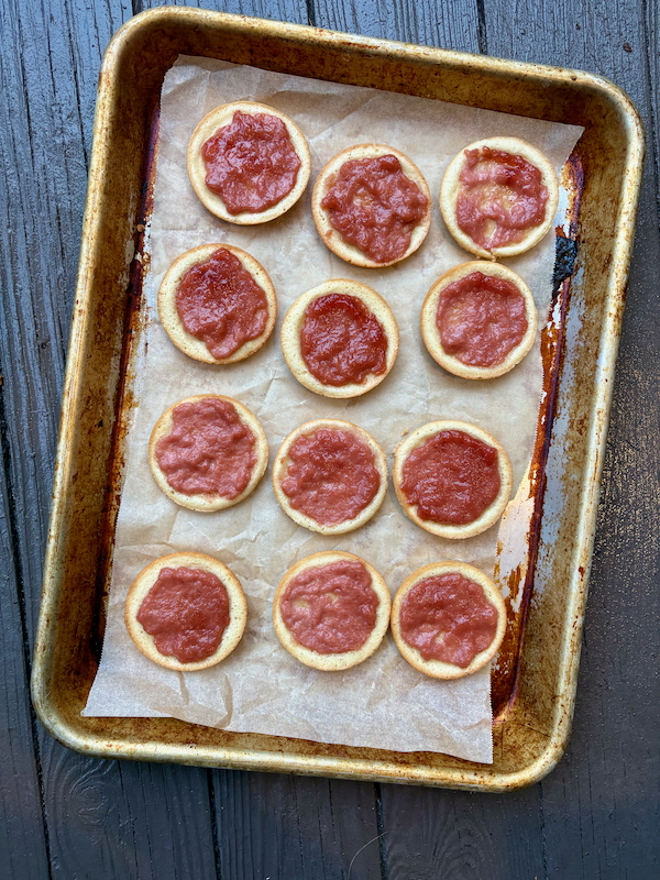 - When the cake bases are cool, spoon 1 teaspoon of cranberry jelly in the indentation of each cake.