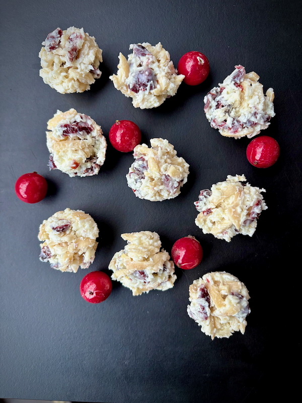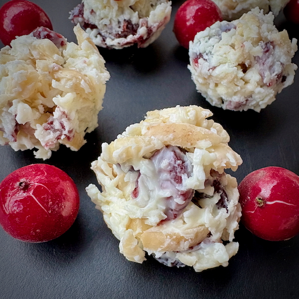 Easy, no-bake white Christmas bites, updated with cranberries and almonds!